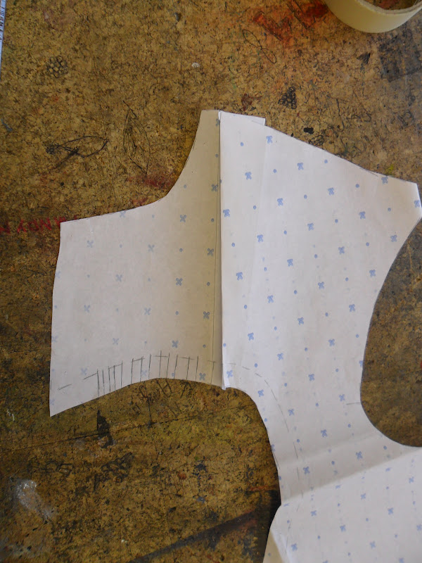 The first thing that I did was make a few amendments to my patterns. I removed the flat parts of the shoulder dart from 2 of the three panels and I will work on easing the rest of the dart out of the other.